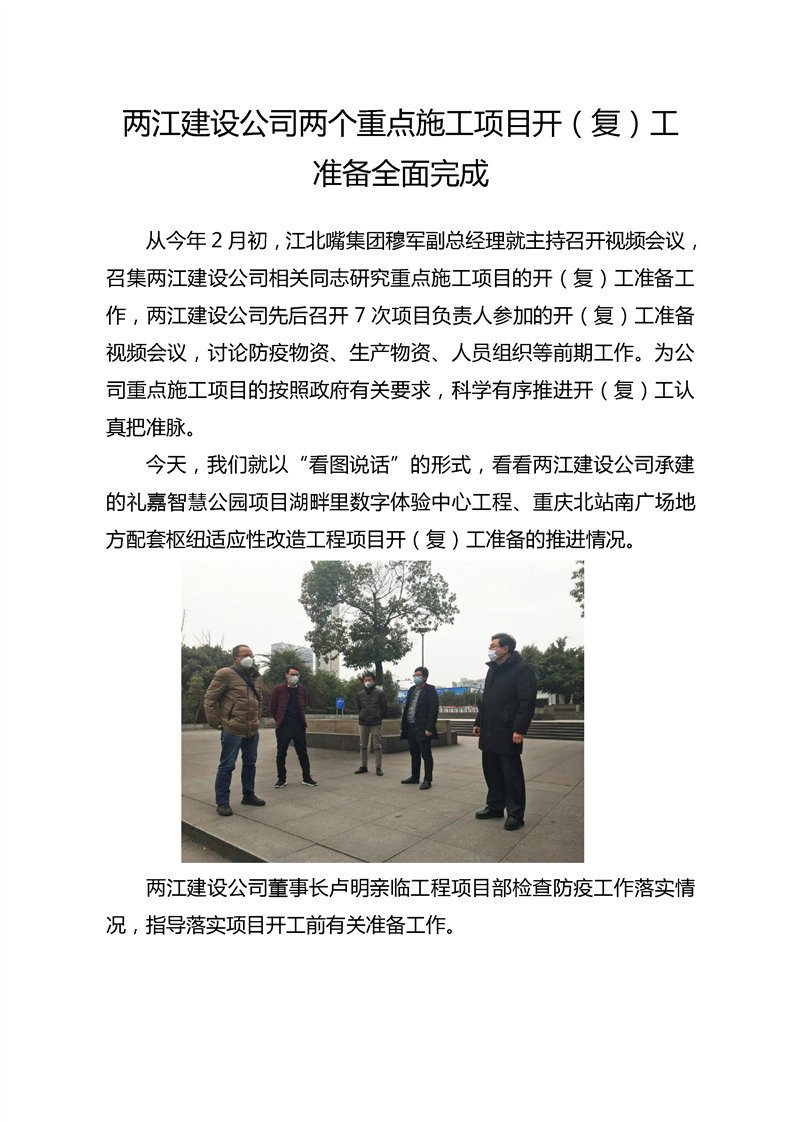 兩江建設公司兩個重點施工項目開(復)工 準備全面完成