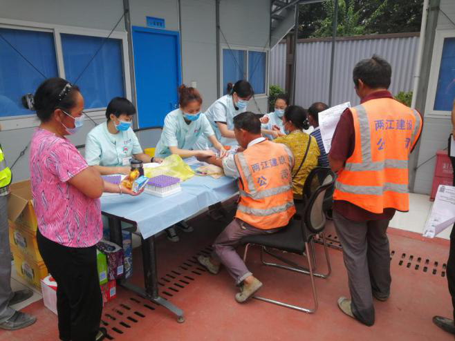 兩江建設公司重慶北站南廣場地方配套樞紐適應性改造工程項目部聘請具有體檢資質服務的醫療機構到項目開展本年度員工免費健康體檢。