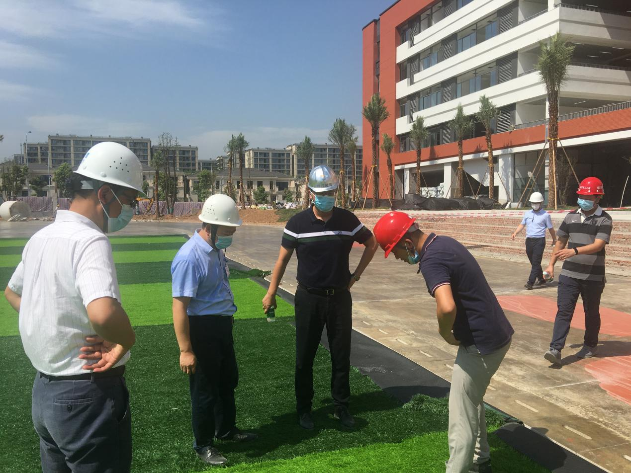 上午9點30分,驗收組首先對騰芳中、小學項目進行了現場實體檢查,逐一對普通教室、功能教室、辦公室、廁所、廚房、食堂、多功能廳、室外運動場等的功能、安全和觀感質量進行了查驗,對室內無機納米硅晶磨石地坪和運動場人造草皮等特色項目給予了肯定,對代建業主兩江建設公司、施工單位建工三建等提出表揚。