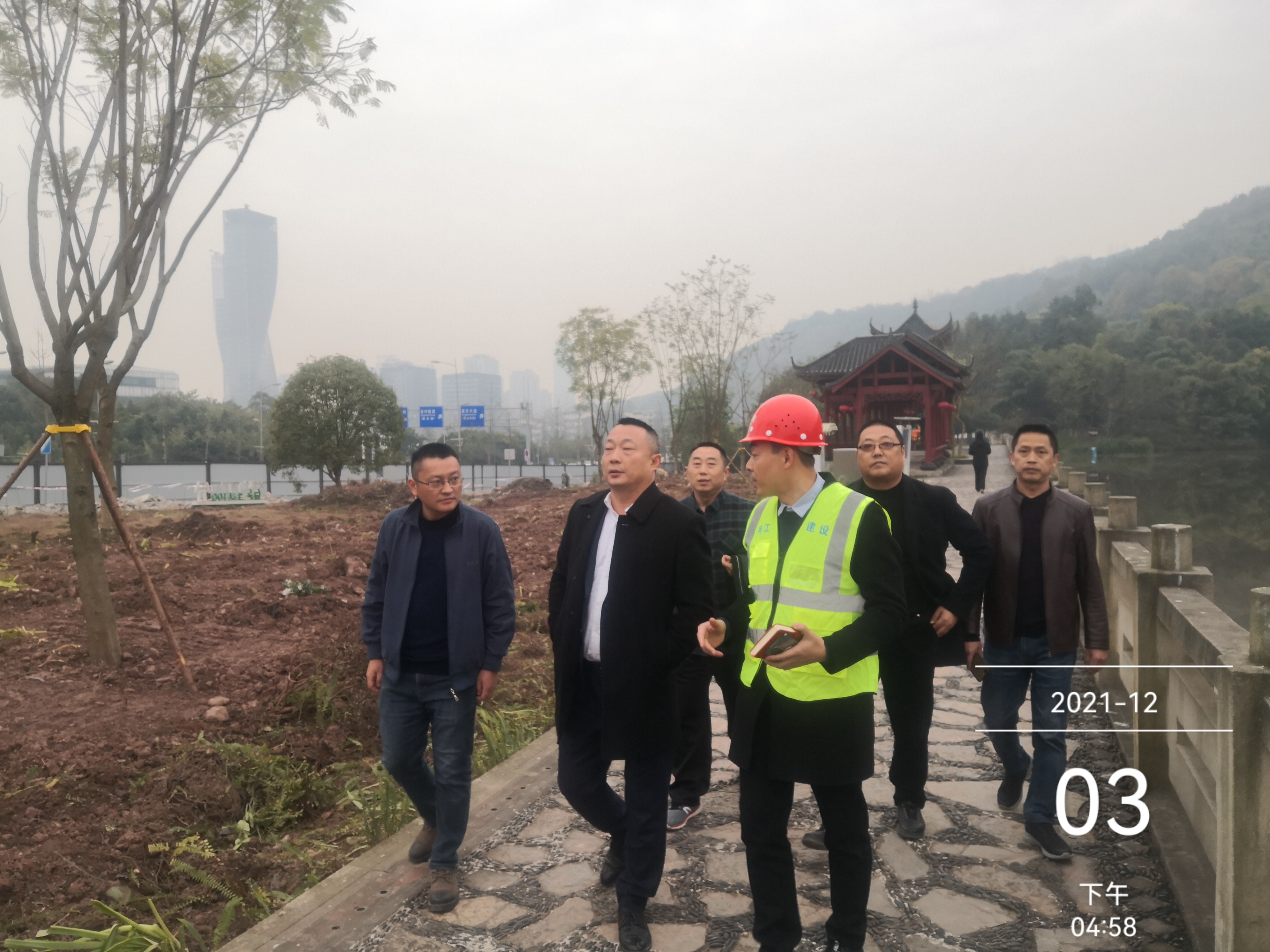 來源:工程管理部 何晉渝 發布日期:2021/12/3 【打印此文】12月3日下午,代建單位江水源公司夏盛董事長一行,在兩江建設公司項目負責人的陪同下,實地視察了照母山森林公園品質提升工程建設情況。