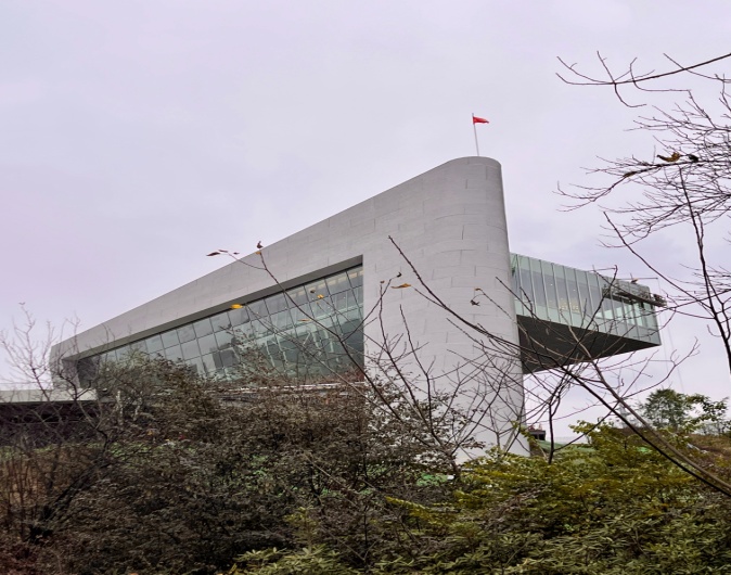 該工程位于寸灘港片區(qū),項(xiàng)目呈三角形,總建筑面積4859.32㎡,高度21.6m,包括會(huì)議室、展廳、洽談區(qū)、參觀休息平臺(tái)等配套設(shè)施。
