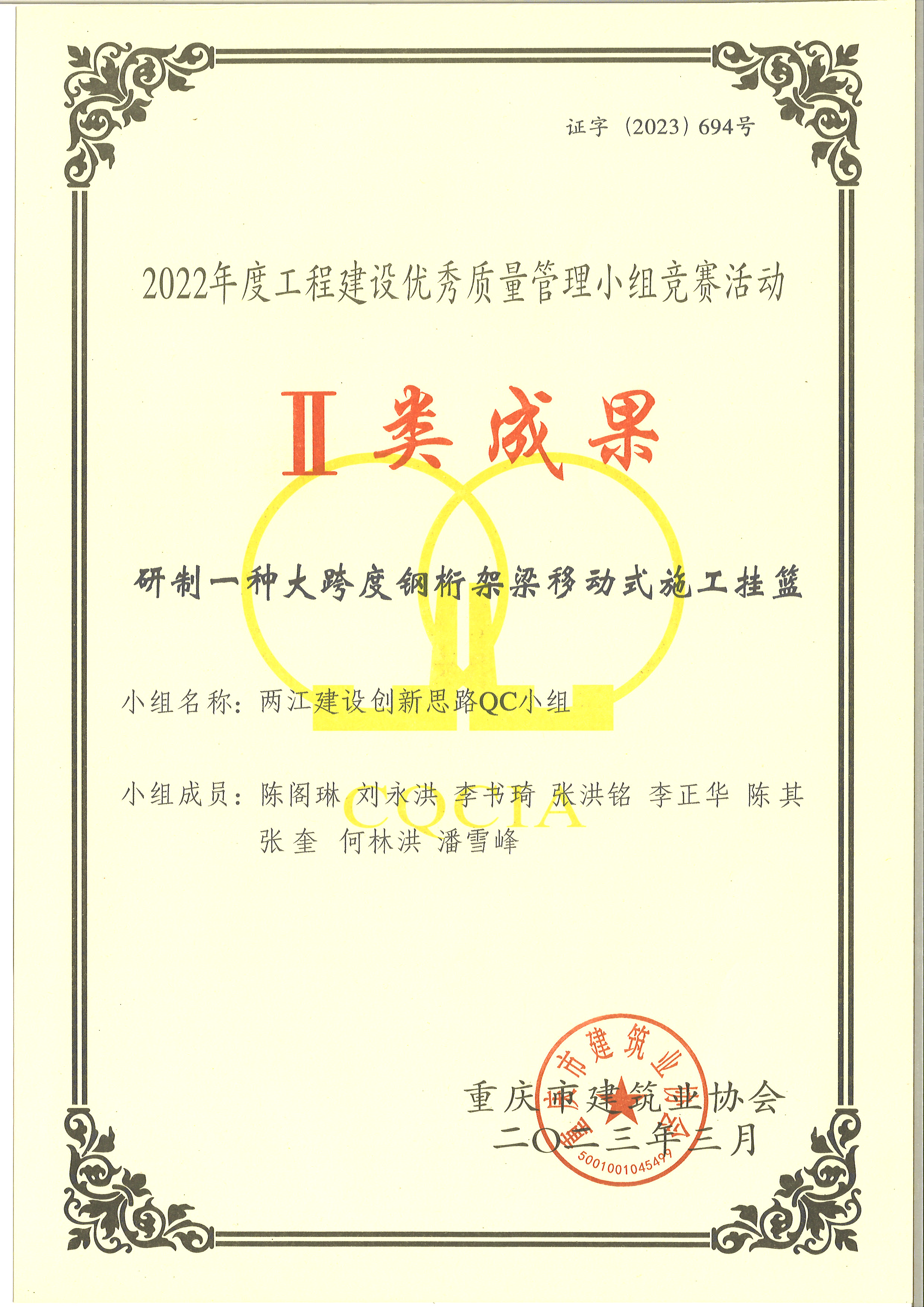 全國建設質量管理小組活動成果大賽二類成果