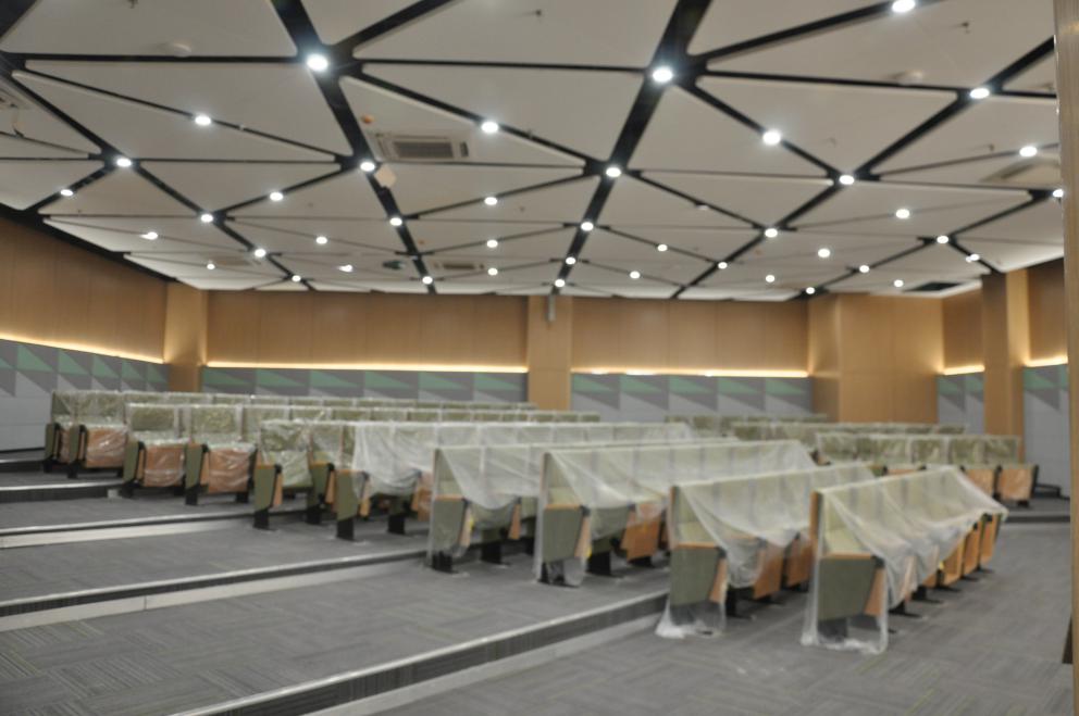 從6月初進場到學院9月初開學,項目工期僅有3個月,而項目需裝修改造的面積近6.5萬平方米,如此緊迫的工期成了橫亙在兩江建設人面前的第一道難關。由于該項目建筑裝飾造型復雜,工序較多,同時由于現場材料、人員眾多,進一步增加了施工現場的管理及實施難度。但作為兩江新區建筑領域的“先鋒隊”“排頭兵”,兩江建設人敢啃“硬骨頭”的那股倔勁兒反而被激發出來。