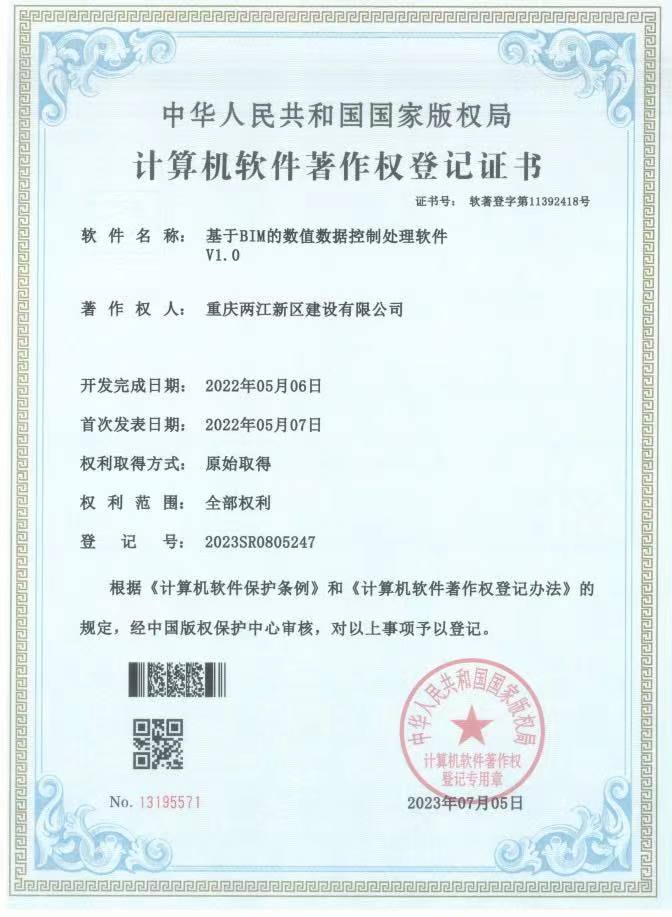 兩江建設公司首獲國家計算機軟件著作權