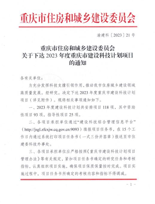近日,重慶兩江新區建設建設有限公司1個課題獲重慶市住房和城鄉建設委員會2023年建設科技計劃立項。兩江建設公司本次被市住建委立項的指導性課題名為《超大斷面矩形頂管在裝配式下穿道工程中的研究與應用》。
