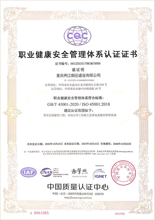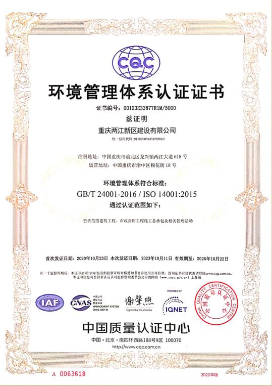 近日,兩江建設公司順利取得了中國質量認證中心對公司《質量管理體系》、《環(huán)境管理體系》、《職業(yè)健康安全管理體系》的再認證。