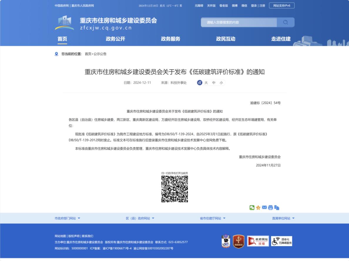 來源:圖文/工程管理部 陳力 發布日期:2025/1/15 【打印此文】為貫徹執行國家節約資源和保護環境的政策,響應國家“節能減排”的號召,推進經濟社會可持續發展,提高重慶市低碳建筑建設技術水平,規范重慶市低碳建筑的評價工作。根據重慶市住房和城鄉建設委員會《關于下達2022年度重慶市工程建設標準制定修訂項目立項計劃的通知》(渝建科[2022] 32號)的要求,重慶市住房和城鄉建設技術發展中心、重慶大學會同重慶兩江新區建設有限公司等參編單位,對重慶市工程建設標準《低碳建筑評價標準》DBJ50/T-139-2012 整體上進行了修訂。