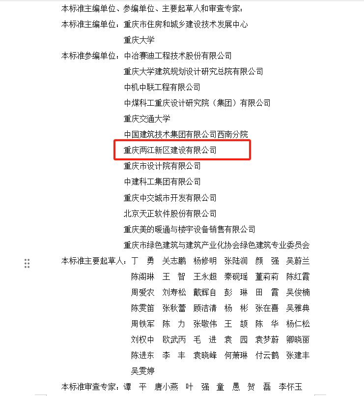 兩江建設公司副總經理陳閣琳帶領工程管理部副經理陳力,在編制組的組織領導下,經過多輪研討修訂,最終修訂后的評價標準于2024年11月27日通過重慶市住房和城鄉建設管理委員會審查公布。《低碳建筑評價標準》DBJ50/T-139-2024將于2025年3月1日正式實施,《低碳建筑評價標準》DBJ50/T-139-2012 同時廢止。